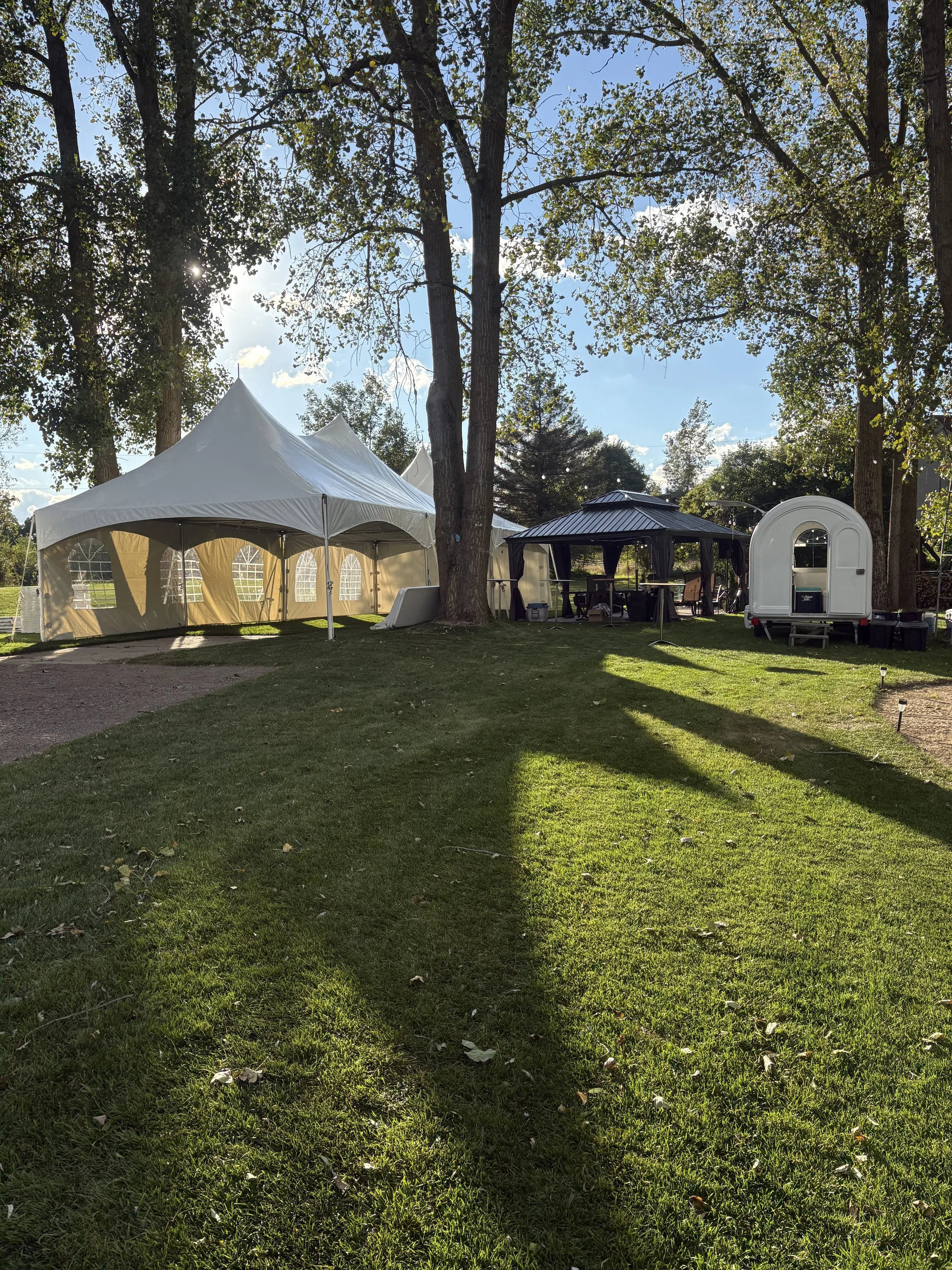 Tables and chairs will be delivered and placed neatly under the tent for your convenience. If you’d like assistance with setup, we’re happy to provide that for an additional fee.